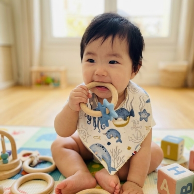 Chaque bavoir est confectionné à la main dans mon atelier situé à Belcodène, en Provence. Je sélectionne avec soin des matières douces et résistantes afin de garantir un usage quotidien durable. La face imprimée en coton Oeko-Tex apporte une touche de douceur et de style et l’éponge en coton Oeko-Tex offre une excellente absorption et reste souple et agréable au toucher.