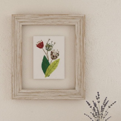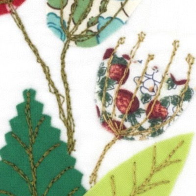 Découvrez une carte postale fleurs et végétaux en tissu, entièrement réalisée à la main dans mon atelier.