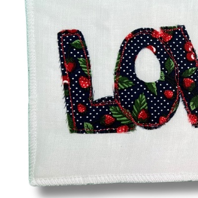 Découvrez une carte postale en tissu de la collection love, entièrement réalisée à la main dans mon atelier.
