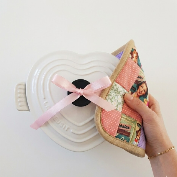 Cette manique patchwork carrée allie esthétique et praticité. Grâce à sa double épaisseur matelassée spécial manique, elle protège efficacement vos mains de la chaleur lors de la manipulation de plats chauds, directement sortis du four.