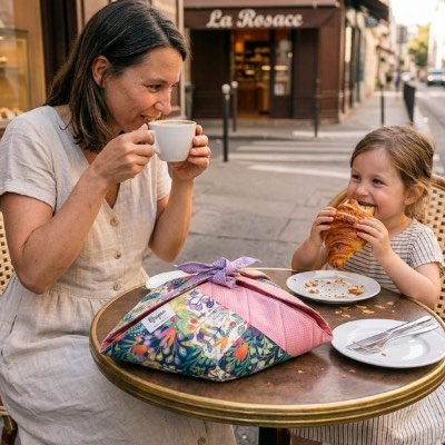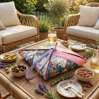 Apportez une touche pratique et colorée à vos déplacements avec ce porte-plats unique, en tissu signé Rhapso Couture.
