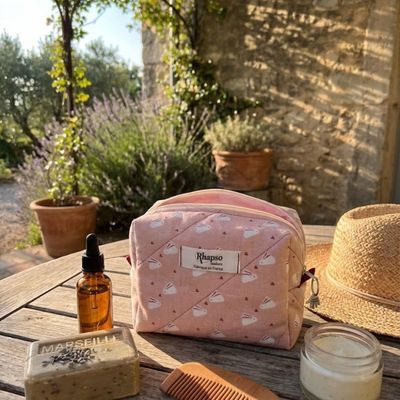 Emportez partout votre maquillage et vos essentiels avec cette trousse à maquillage artisanale, pratique, élégante et fabriquée à la main en Provence.